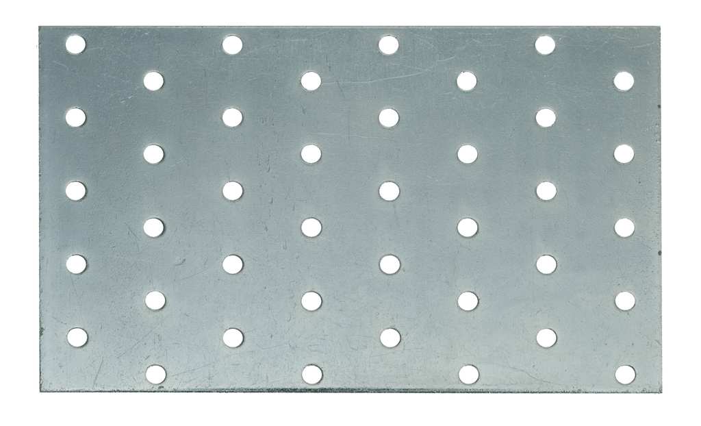 In acciaio, pesante, diritta. Spessore mm. 2,5, fori Ø mm. 5.