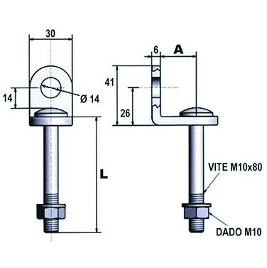In acciaio temprato zincato, con vite M10x80, dado M10 e rondella.