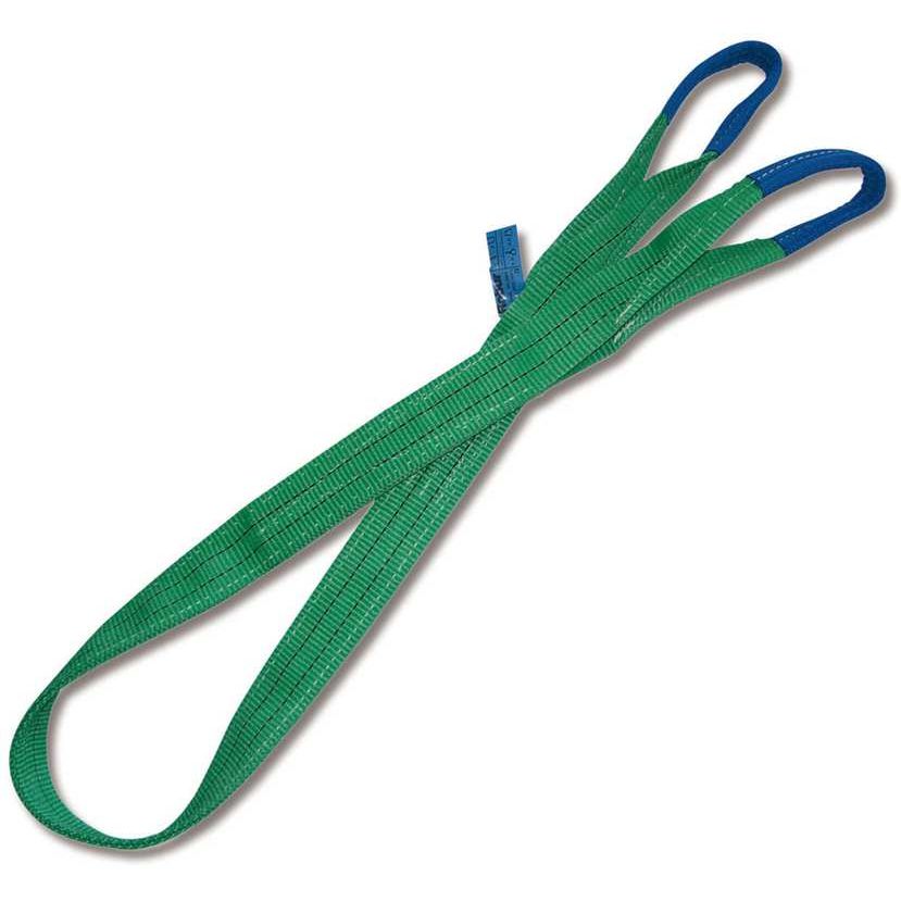 100% poliestere, braca a 2 strati con rinforzo delle asole, alta resistenza, fattore di sicurezza 7:1, a norma EN 1492-1. Per carichi fino a 2 tonnellate, col. verde.