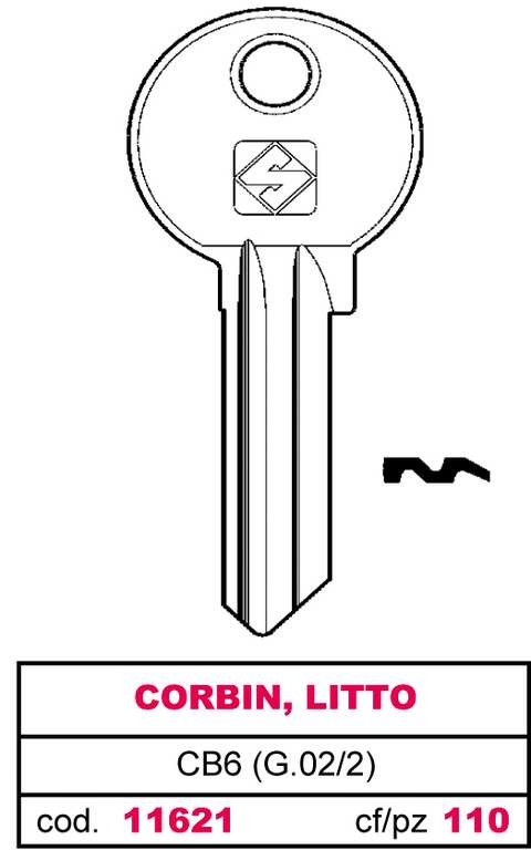 Silca CHIAVE OTTONE CB6 (G.VAC 2) CORBIN, LITTO