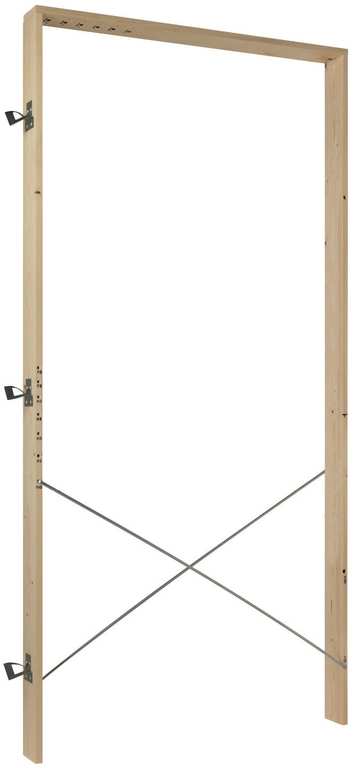 In legno di abete certificato PEFC, utilizzabile per 7 diverse larghezze di porte (max cm. 90), 6 zanche in lamiera di acciaio zincato, gancio metallico centrale che conferisce ulteriore sicurezza di muratura nel tempo, ferri distanziali in acciaio Ø mm. 8 che assicurano massima stabilità. Assemblaggio facile, rapido e comodo. Fornito completo, pronto per essere montato.