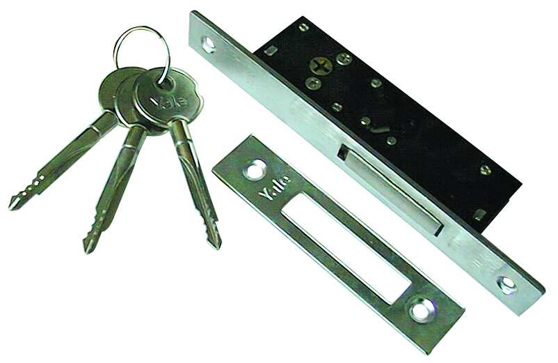 Serratura da infilare. 1 mandata, 3 chiavi a spillo, scatola mm. 34x105.