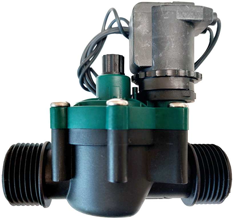 Elettrovalvola per programmatori, applicazione professionale 24V, ideale per l'impiego su ampi spazi esterni o su terrazze o verande. Corpo in polyammide, nucleo in acciaio inox, membrana NBR, pressione di esercizio 0,5÷10 bar, apertura manuale rotazione 45° del solenoide, protezione IP67.