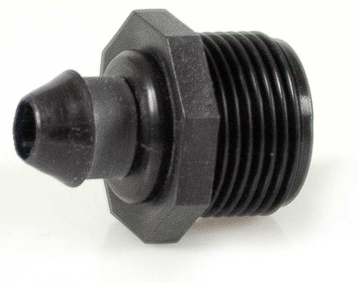 In polipropilene, filettato maschio, con gommino.