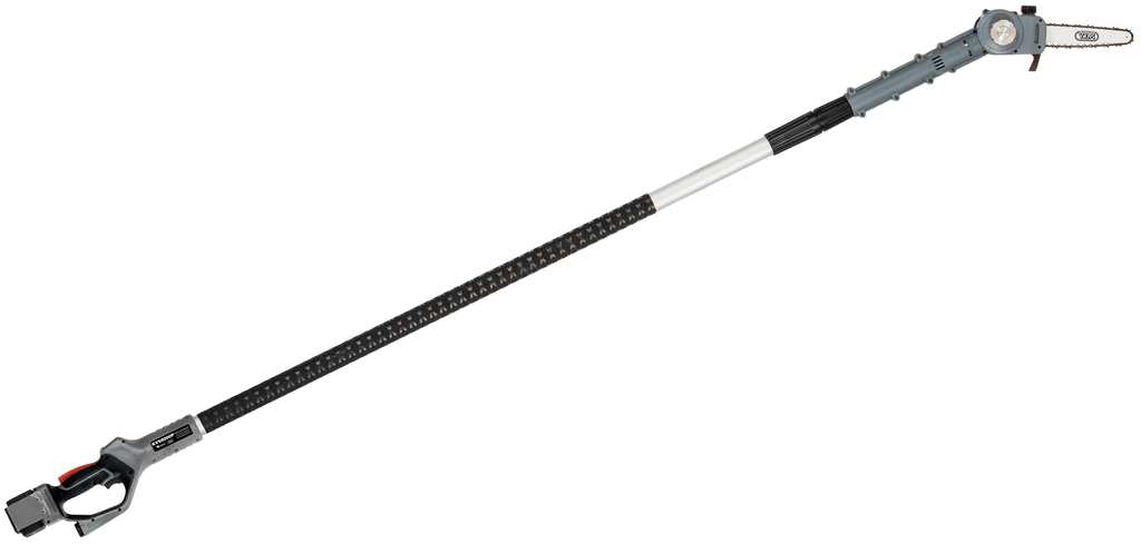 Motore Brushless, 2 batterie al litio 4,0 Ah ad innesto rapido, caricabatteria a 3 vie, display per la visualizzazione di carica batteria, tempo di lavoro e percentuale lubrificazione, testa orientabile con serbatoio dell'olio integrato con livello visibile, asta estensibile mt. 1,7÷2,5, doppio interruttore di sicurezza, taglia rami fino a Ø mm. 160, lubrificazione automatica e regolabile, impugnatura ergonomica con protezione della mano, kit di manutenzione incluso.