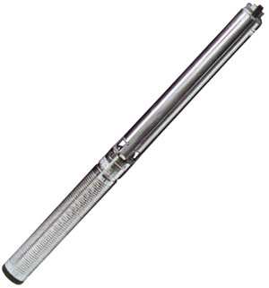 Elettropompa centrifuga multistadio per pozzi da 4. Motore in bagno di liquido refrigerante. Camicia esterna in acciaio inox di generoso spessore per garantire una notevole robustezza meccanica.