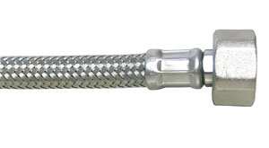 Anti-schiacciamento, bussola e treccia in acciaio inox, raccordi in ottone, tubo interno in polietilene resistente alle alte temperature. Ideale per il collegamento della rete idrica a qualsiasi tipo di rubinetto, conforme alla normativa EN13618. In grado di garantire una portata d'acqua di 32 litri/min a una pressione di 3 bar.