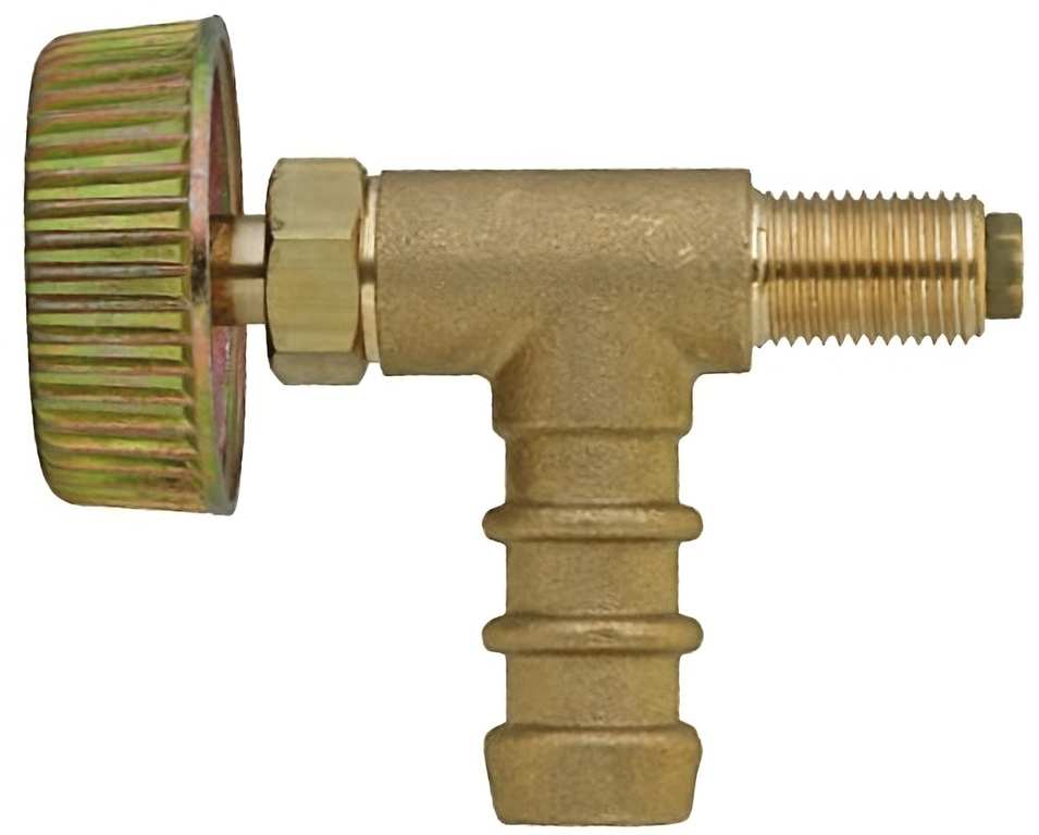 Rubinetto a spillo, entrata portagomma Ø mm. 14, uscita M10x1/2'' M.