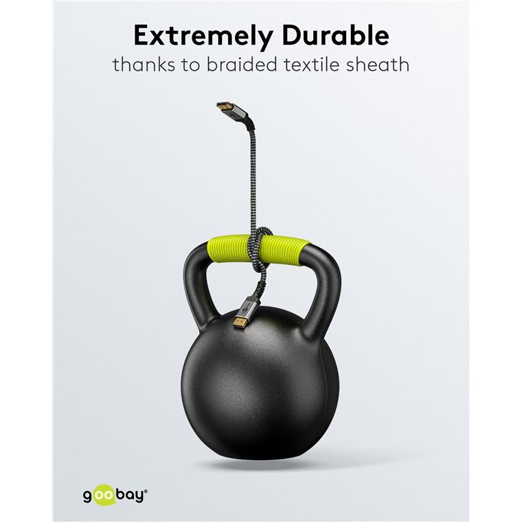 Cavo 10K specialmente per il gioco. Immagini fluide senza vibrazioni grazie all'alta frequenza di aggiornamento fino a 240 Hz (a seconda della scheda grafica e del monitor)