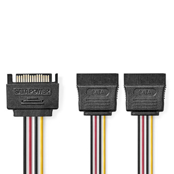Internal Power cable | SATA 15-Pin Male | 2x SATA 15-Pin Female | Gold Plated | 0.15 m | Round | PVC | Multi Colour | Box