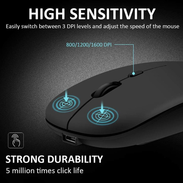 Mouse wireless nero con batteria ricaricabile incorporata