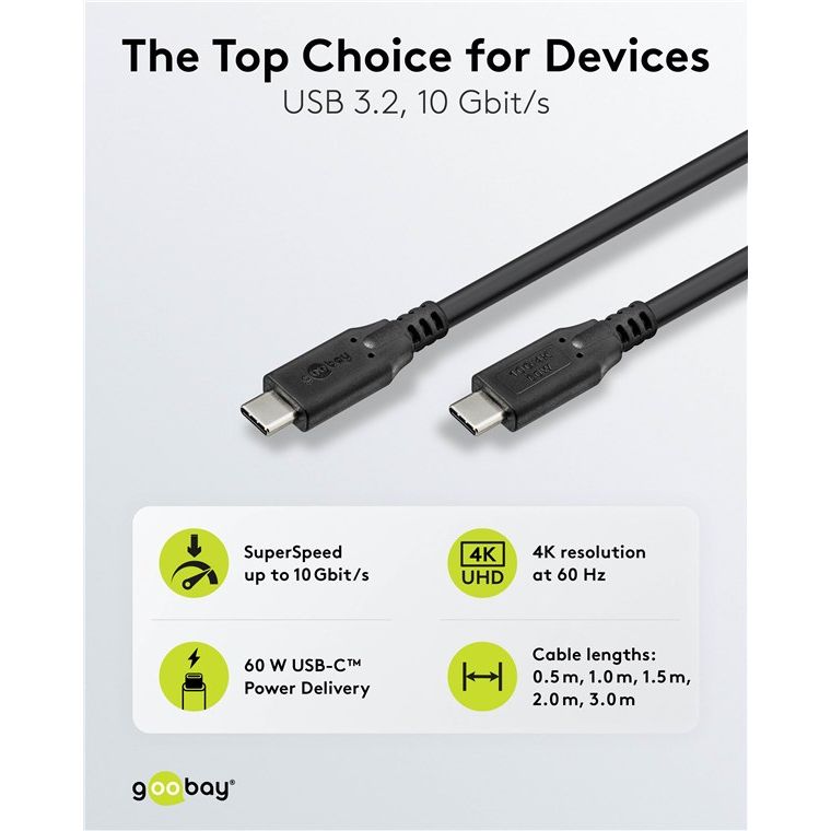 Cavo USB-C, USB 3.2, 60 W, 10 Gbit/s, Power Delivery, 1 m