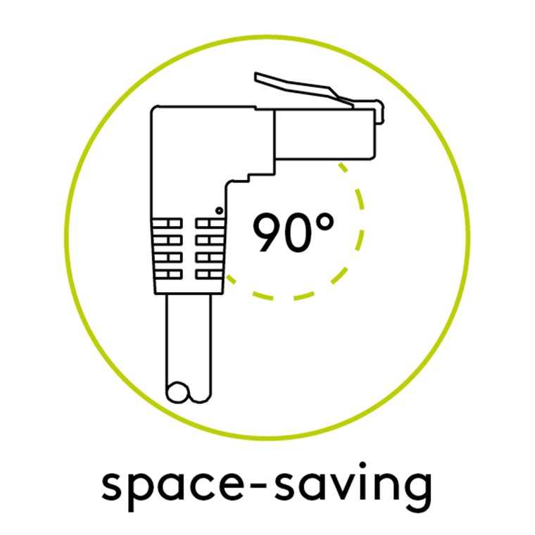 Il cavo di rete CAT 5e con connettori RJ45 a 90° (senza protezione fermo) è la soluzione ideale per gli spazi ristretti.