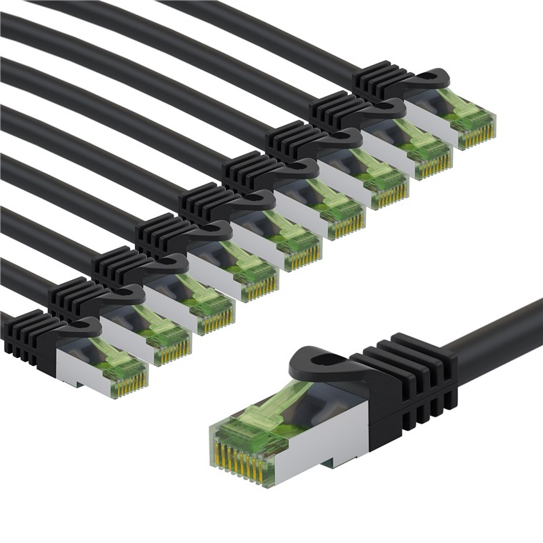 Cavo patch CAT 8.1 certificato GHMT, S/FTP (PiMF), 3 m, nero, kit di 10