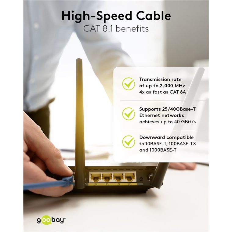 Con una larghezza di banda di trasmissione fino a 2.000 MHz, il cavo Ethernet ha una larghezza di banda 4 volte superiore a quella dei cavi CAT 6A.