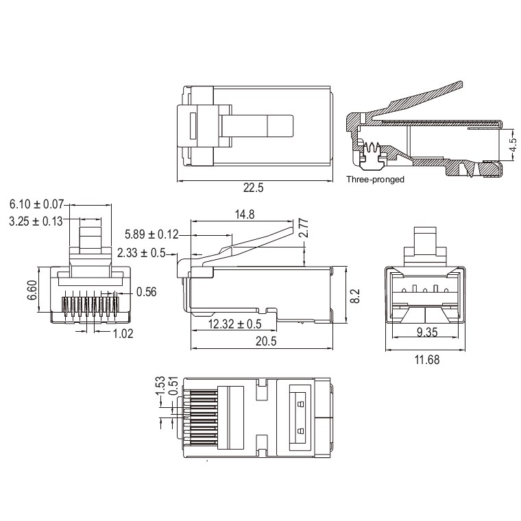 Spina CAT 6 con contatti dorati da 50? per una trasmissione ottimale di segnali elettrici o ottici