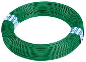 Zincato e plastificato, per il fissaggio delle reti, col. verde, peso rotolo kg. 1 circa. Confezione 5 rotoli da mt. 100.