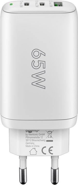 Grazie alla potente potenza di 65 W e alle connessioni universali USB-C, l'adattatore di ricarica è adatto a qualsiasi dispositivo, dagli smartphone ai notebook ad alte prestazioni