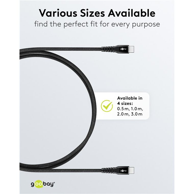 Con una comoda lunghezza di 3 m, il cavo di ricarica USB-C di Goobay garantisce un ampio raggio d'azione