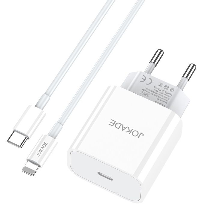 Caricabatterie con cavo USB tipo C / Lightning ricarica rapida 3A 27W bianco JB069