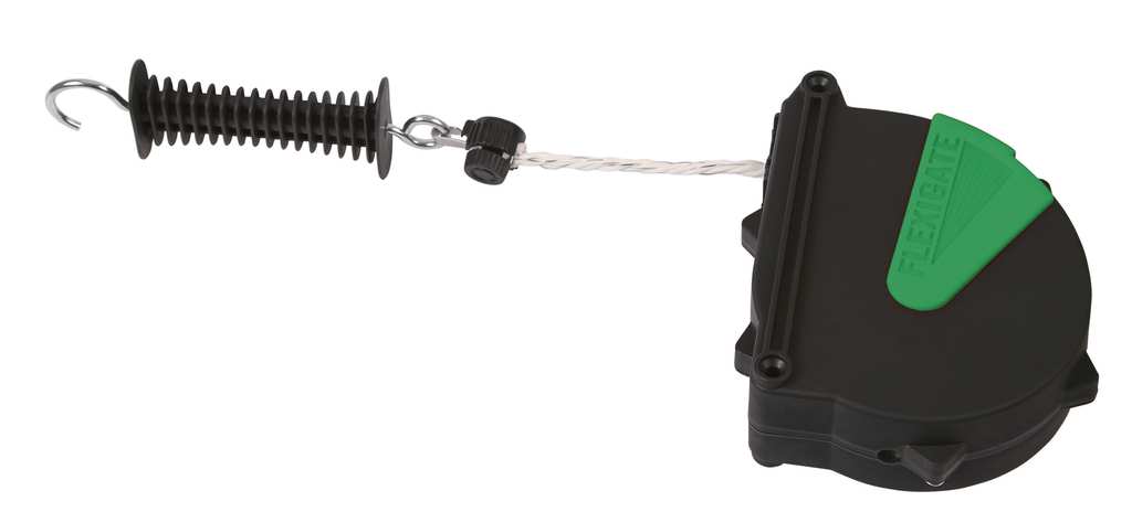 Con corda, ideale per recinti per cavalli, contatto elettrico passante, fissaggio su paletti di legno, avvolgimento automatico, nessun cedimento. Estraibile fino a max mt. 7,5.