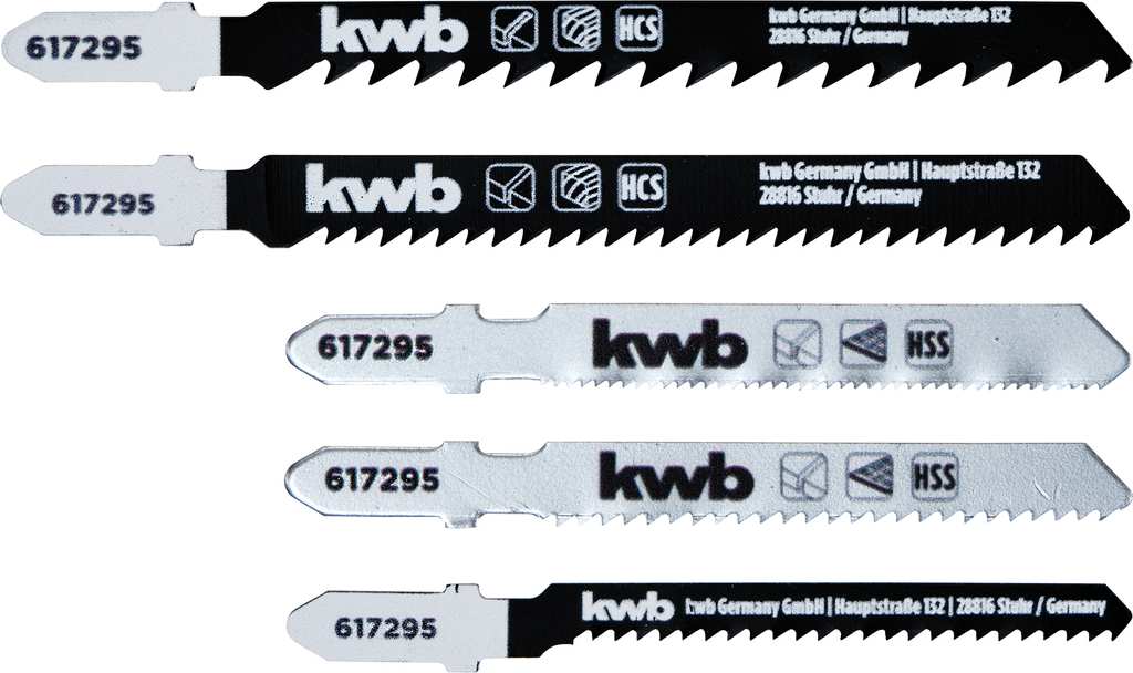 Assortimento lame per tagli curvi o dritti.