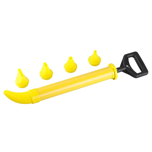 A set of plastic grouting guns and fittings of various shapes and diameters to adapt to the shape of the joint.