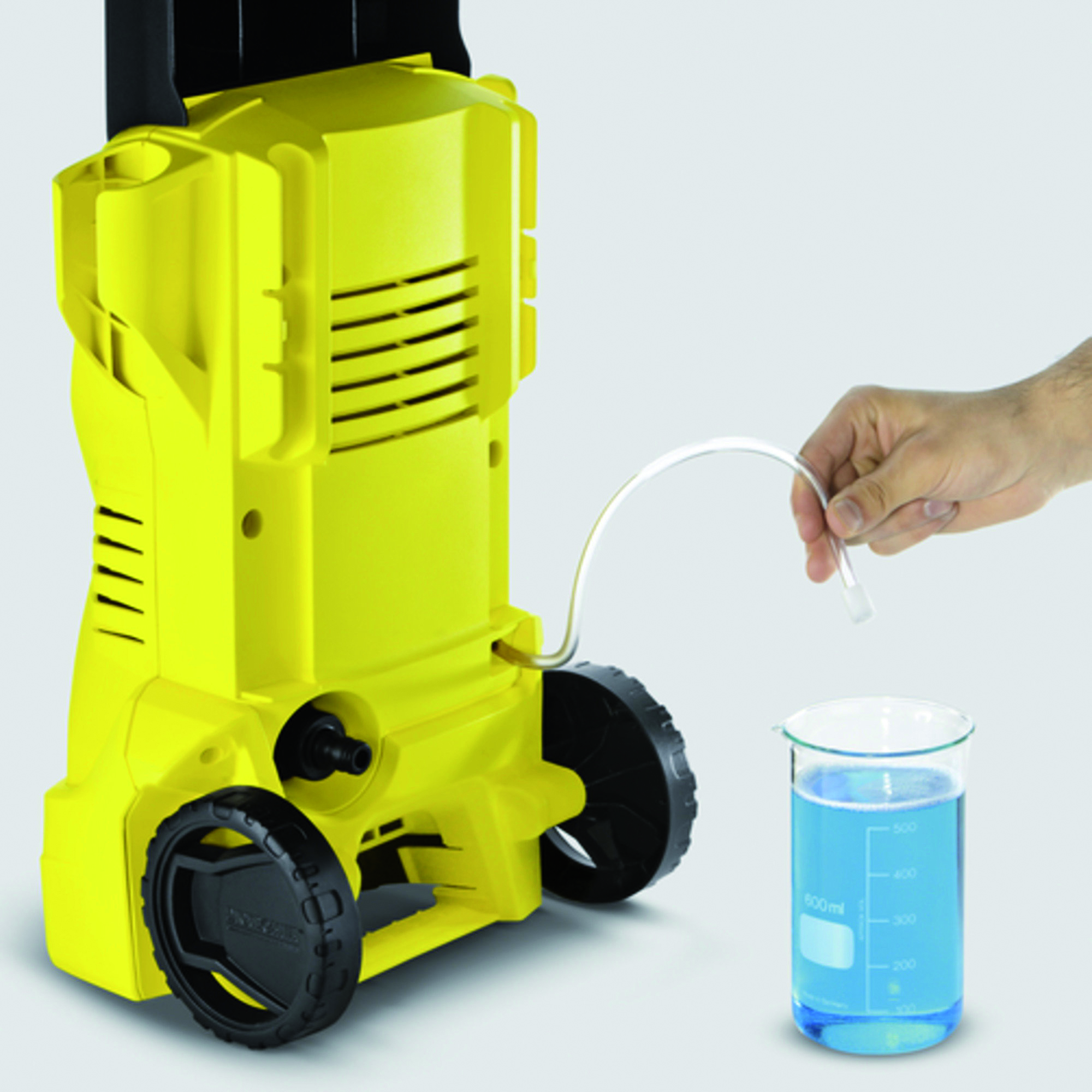 Pompa assiale a 3 pistoni, aspirazione detergente tramite apposito tubicino, filtro idrico integrato, valvola di sicurezza e funzione stop motore, protezione contro il sovraccarico, spegnimento del motore a pistola chiusa, vano porta-lancia e gancio porta-cavo, completa di ruote. In dotazione: lancia alta pressione, pistola alta pressione, ugello rotante, tubo flessibile alta pressione mt. 4, raccordo tubo da giardino da 3/4''.