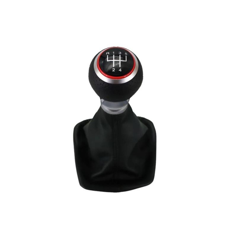 Shift lever with cuff Škoda Octavia 2 2004-2013 5ST S-LINE RED. Black head with perforated leather, black cuff. 12 mm shift rod hole.
